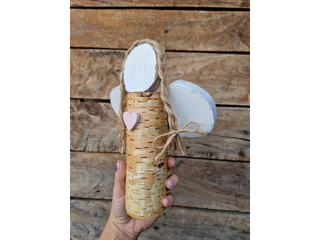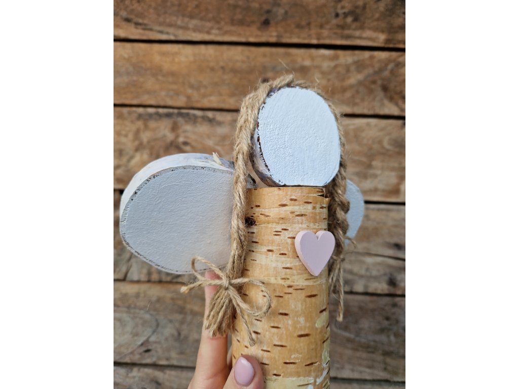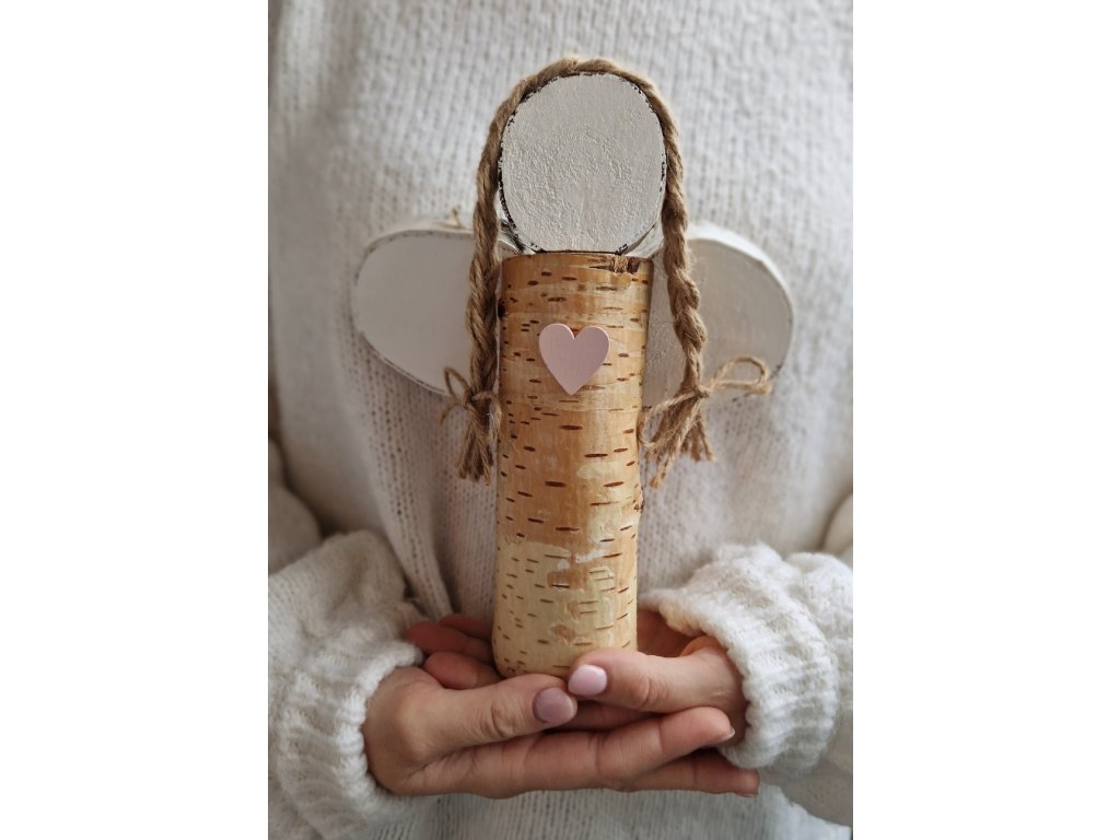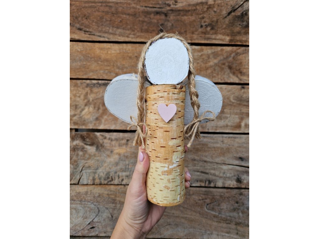 Kdo by nemiloval andílky. Já teda rozhodně ano, obzvlášť ty ručně stvořené. Tento buclatý andílek je vyroben ze dřeva, vlásky má pletené z přírodního provázku a na hrudi nese dřevěné růžové srdce. Drahuška je láskyplná, mírumilovná a má ráda svět, stejně jak vyznívá z jejího jména. Tato andělka se stane originální přírodní ozdobou vašeho domova. Je to vhodná celoroční dekorace, ideální také jako dárek pro vaše milované.