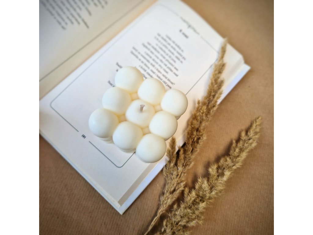 Dekorativní svíčka ze sójového vosku s bavlněným knotem. Přírodní krémová barva, bez přidané vůně, čistě přírodní složení, bez toxinů ♥