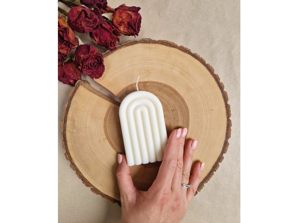 Designová svíčka vyrobená ze sójového vosku s bavlněným knotem. Přírodní krémová barva, čistě přírodní složení, bez přidané vůně, bez toxinů ♥