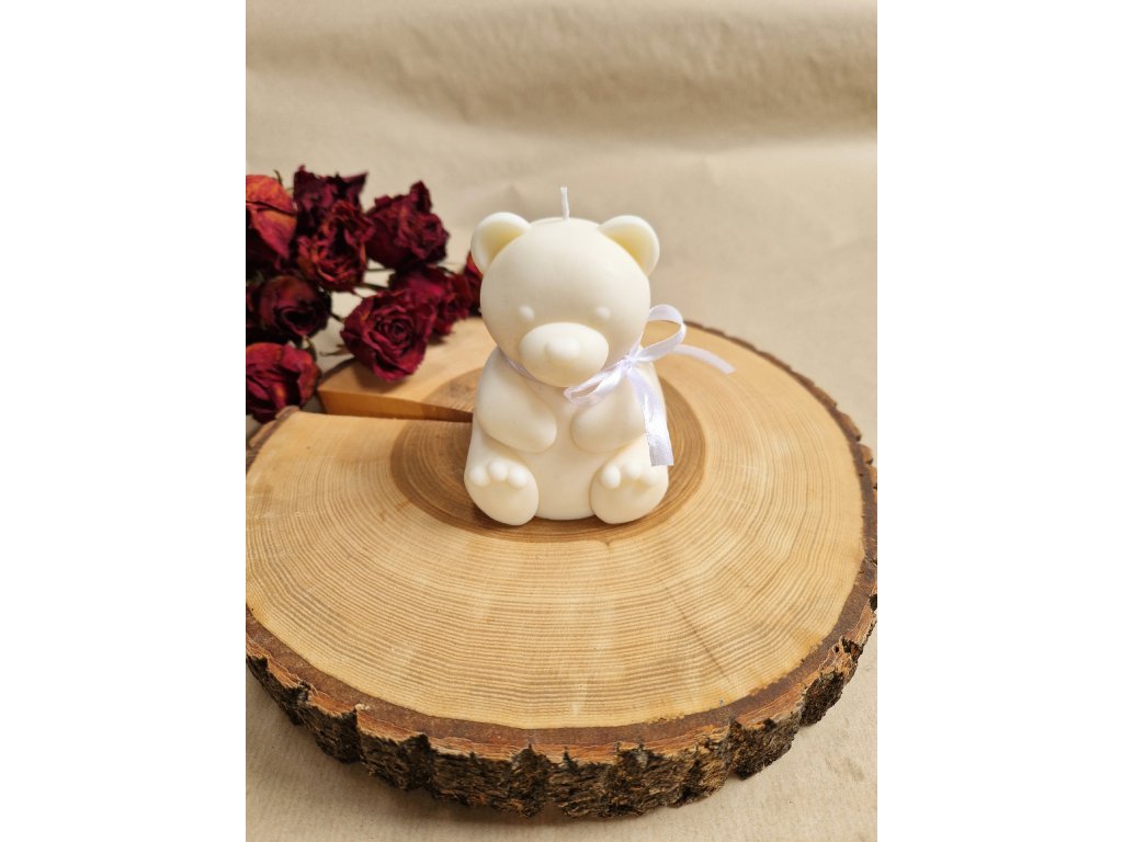 Designová svíčka vyrobená ze sójového vosku s bavlněným knotem. Přírodní krémová barva, čistě přírodní složení, bez přidané vůně, bez toxinů, s mašličkou kolem krku ♥